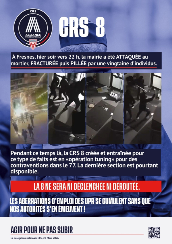 CANTONNEMENT DE MEAUX CA SUFFIT ! La mésaventure vécue par la CRS 6 n'a visiblement pas servi de leçon Publication : 7 janvier 2026 Lire la suite... CRS, DEL CRS Agglomération IDF