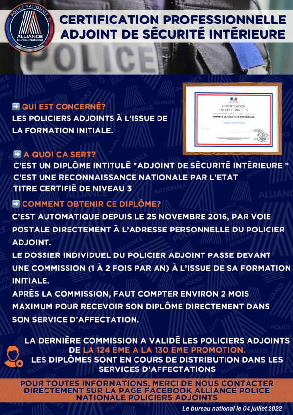 Certification professionnelle Adjoint de sécurité intérieure